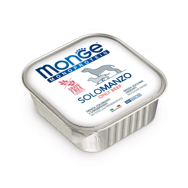 Monge Natural Superpremium – Dog Food Monoprotein Pâté 100% Beef is a wet food can for dogs of all breeds. This wet food can for dogs is part of the Monge Wet product line. The wet food can for dogs contains a single animal protein source, high-quality beef. The products are highly palatable and 100% sourced from Italy. The Monge Wet wet food can for dogs provides a balanced diet with complex vitamins and micronutrients. This wet food can for dogs contains no preservatives, colourings, or added sugars. The wet food can for dogs is formulated with a single animal protein source; however, it may contain traces of other protein sources.